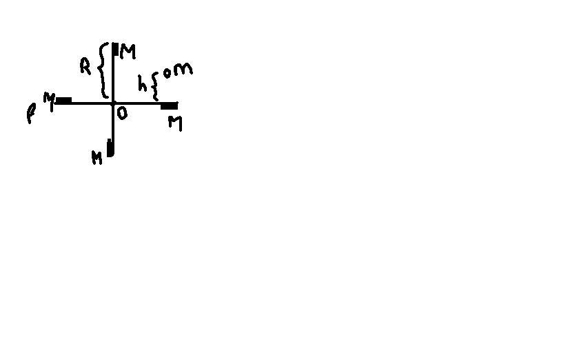 На невесомых жестких стержнях на расстоянии R от оси вращения О укреплены плоские металлические пластины массой M каждая .Система находится в покое. На высоте h над правой пластиной находится металлический шарик массой m.Шарик отпускают и он абсолютно упруго ударяется о пластину.Определить высоту его отскока h(0) и скорость U с которой начнет вращение мельница после удара ?Сопротивление воздуха и трением в оси О пренебречь.