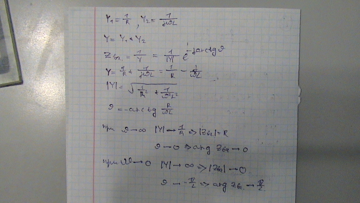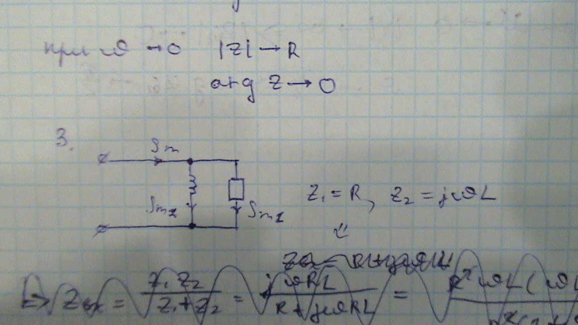 2. Определить копмплексное входное сопротивление цепи. Указать, чему равен модуль и аргумент входного сопротивления при частоте w стремящейся к бесконечности (w->@@) и при w->0 .