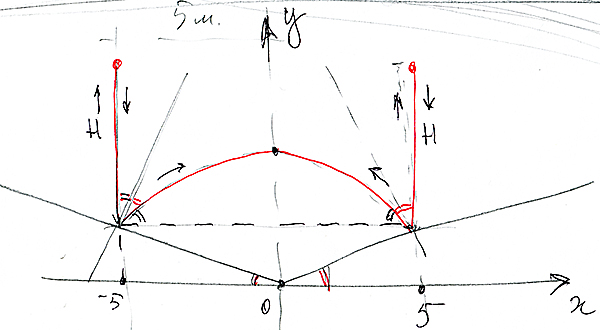 L = 5 м от оси симметрии двугранного угла, его соударения о плоскости