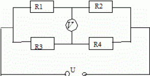 ответ по учебнику дельтаU=U( (R1*R4-R2*R3)/((R1+R2)*(R3+R4)))