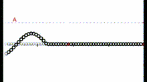 Тут есть красный шарик, понаблюдай за ним — он колеблется вверх-низ, но складывается ощущение, что волна перемещается — это иллюзия.