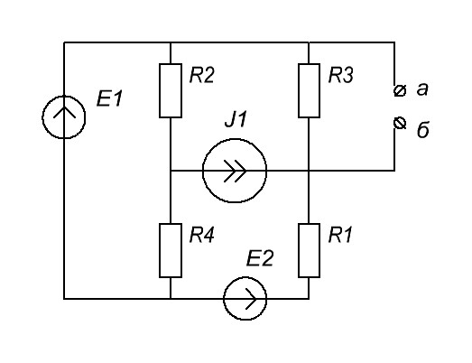 необходимо рассчитать параметры эквивалентного источников напряжения Rн и Eн по отношению к зажимам a и b.