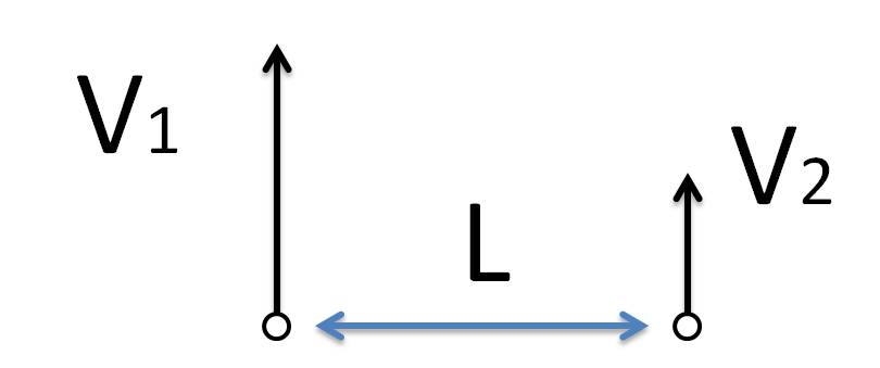 В однородном магнитном поле B в плоскости, перпендикулярной силовым линиям этого поля, установлены на расстоянии L параллельно друг другу электронные пушки. Они по очереди "стреляют". При каком значении L траектории частиц не будут пересекаться? Удельный заряд р и скорости V1 и V2 электронов считать неизвестными.