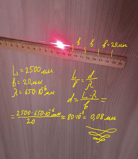У меня при помощи интерференции и дифракции получилось d=0,147 мм. Вместо 0,1 на катушке.