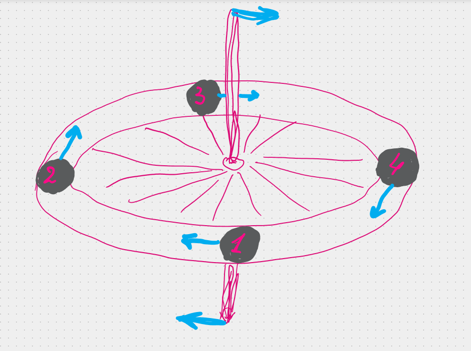 #74646 zhyks :Ну тогда здесь будет совсем просто. Заменим диск гладким обручем с четырьмя шарами, двигающимися внутри обруча. При наклоне оси вправо будет видно, что 1 шарик давит на обруч вниз, а 3-ий шарик давит вверх. Т.е. появляется сила на ось на нас.