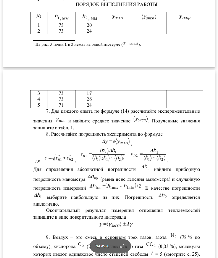 Для каждого опыта по формуле (14) рассчитайте экспериментальные