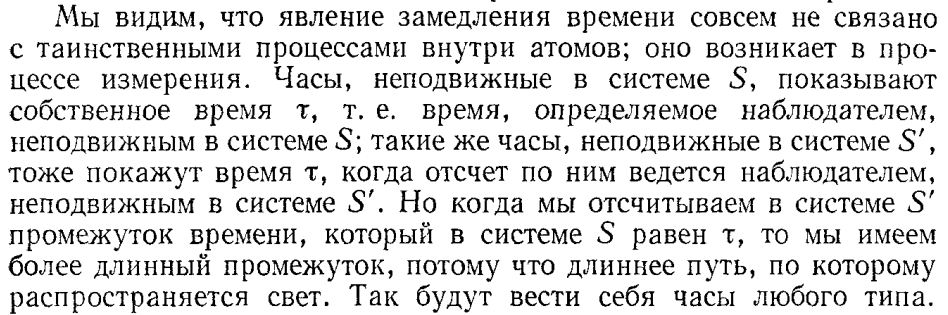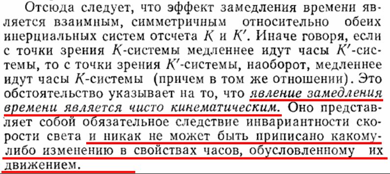 #74617 Alex1945 :Я уже приводил Вам скан из учебника по физике из Берлеевского курса физики, где для СТО было сказано: «Мы видим, что явление замедления времени совсем не связано с таинственными процессами внутри атомов; оно возникает в процессе измерения».
