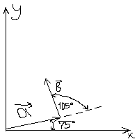 Вектор \(\vec b\) параллелен оси OX, поскольку 750+1050=1800, его проекция на ось OX равна его длине