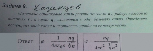 объеденяя формулы получае фи= \(\frac {nq} {4 \pi E E_0 ^3\sqrt{n}} \)