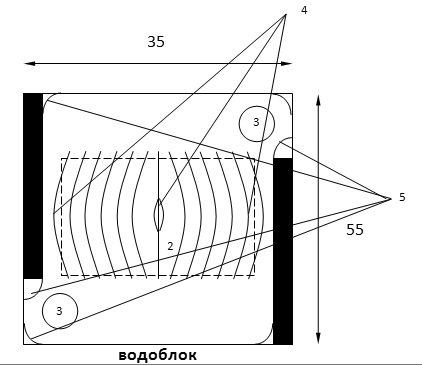 2 - чип,который нужно охладить (300 Вт размером 15х25 мм)