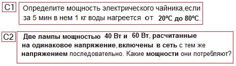 C1. тепло которое пойдет на нагрев воды Q = cm*dt есть работа совершенная током по нагреванию воды в чайнике или просто работа чайника. мощность есть работа в единицу времени, т.е. P = cm*dt/T.