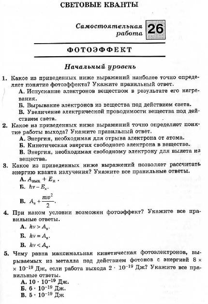 Фотоэффект -тест начальный уровень Автор Сообщение qwerty123 #9588 2012-03-19 18:14 GMT Пользователи 1 сообщений Репутация 0 [-][+] Помогите пожалуйста с ответами Личное сообщение ФорумыФизика » МеханикаФизика » Молекулярная физика и ТермодинамикаФизика » ЭлектродинамикаФизика » Колебания и волныФизика » ОптикаФизика » Физика атомов и молекулФизика » Элементы СТОФизика » Решение задач по физикеФизика » АстрономияОбщее » Наш сайтОбщее » Простые разговорыОбщее » Web-ресурсыОбщее » Альтернативные теории
