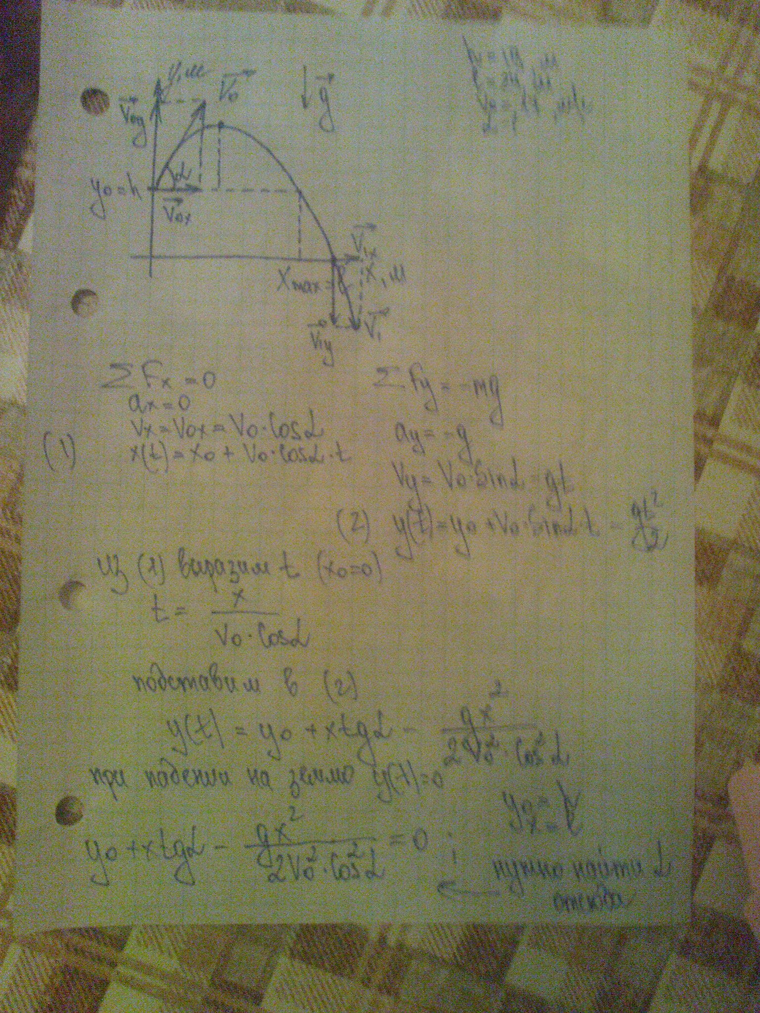 Как я понимаю, запишем уравнение траектории и останется найти только угол. Выглядит так: