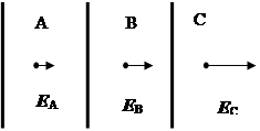 3)Три равномерно заряженные плоскости находятся на некотором расстоянии друг от друга (см. рисунок). Напряжённость в точке А равна 100 В/м, в точке В - 200 В/м, а в точке С - 300 В/м. Определить плотность зарядов на каждой плоскости.