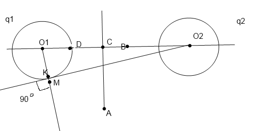 Сферы, изображенные на рисунке, имеют радиусы по 0,05 м и заряды q1=-46 мкКЛ и q2=46 мкКл, которые равномерно распределены по их поверхностям. Расстояние между центрами сфер 20 см. Рассчитать нарпяженность и потенциал электрического поля в т. D, которая находится внутри отрицательно заряженной сферы в непосредственной близости от ее стенки.