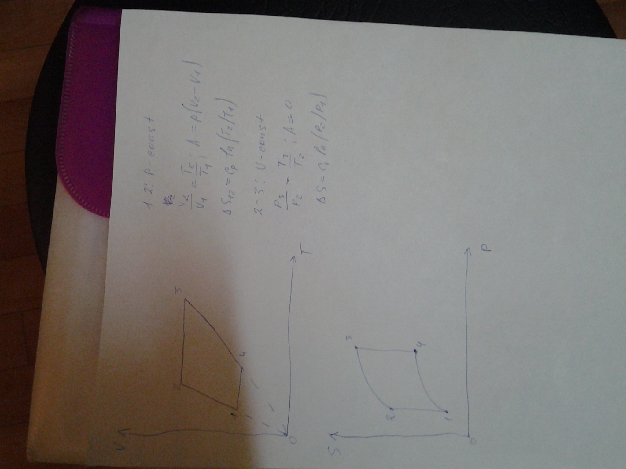 Здраствуйте, помогите разобраться, необходимо перестроить график объема от температуры в энтропии от давления. Как объяснить то, что процессы 1-2 и 3-4 уходят в ноль и как это отобразится на втором графике?